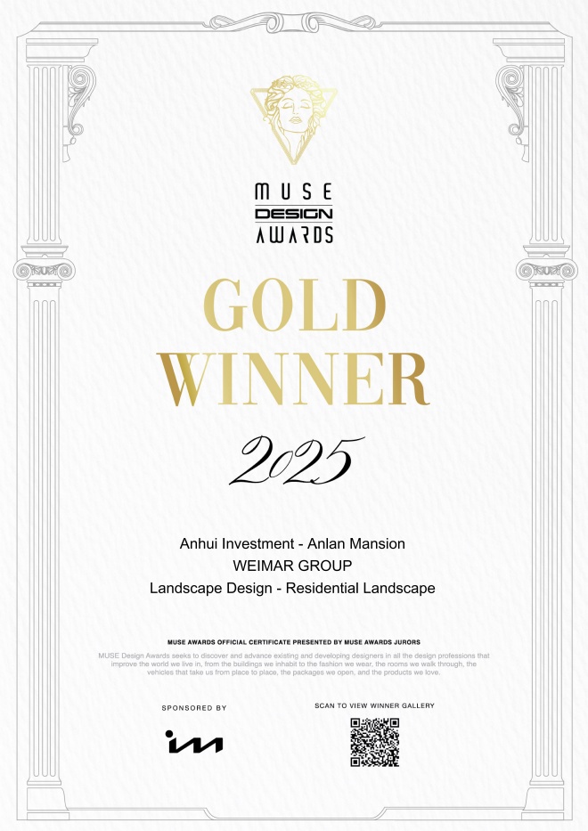 美國Muse設計獎由國際獎項協(xié)會主辦,為全球設計領(lǐng)域重要賽事。皖投·安瀾府憑借建筑與自然環(huán)境和諧共生的設計理念,以及通過科技系統(tǒng)提升室內(nèi)環(huán)境質(zhì)量的創(chuàng)新實踐,在景觀設計類別中脫穎而出,榮獲金獎。這一榮譽既是對項目美學設計的肯定,也是對其“以人為本、健康宜居”理念的國際認同。